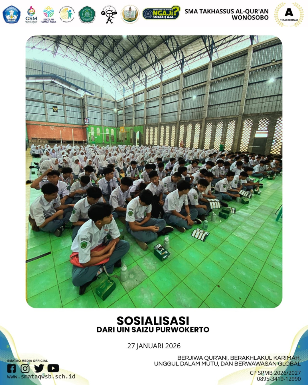 Kehadiran Website dan Smart School SMATAQ ini diharapkan dapat memudahkan penyampaian informasi tentang profil sekolah, aktifitas/kegiatan, data siswa-siswi, serta fasilitas sekolah kami secara terbuka kepada warga sekolah, alumni, masyarakat serta instansi lain yang terkait.