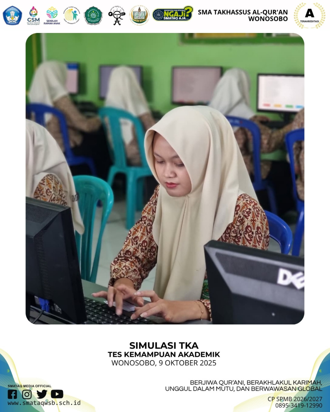 SMA Takhassus Al-Qur’an Wonosobo melaksanakan kegiatan Simulasi Tes Kemampuan Akademik (TKA) pada Rabu, 9 Oktober 2025. Kegiatan ini diikuti oleh seluruh peserta didik kelas XII sebagai bagian dari persiapan menghadapi asesmen akademik yang sesungguhnya.