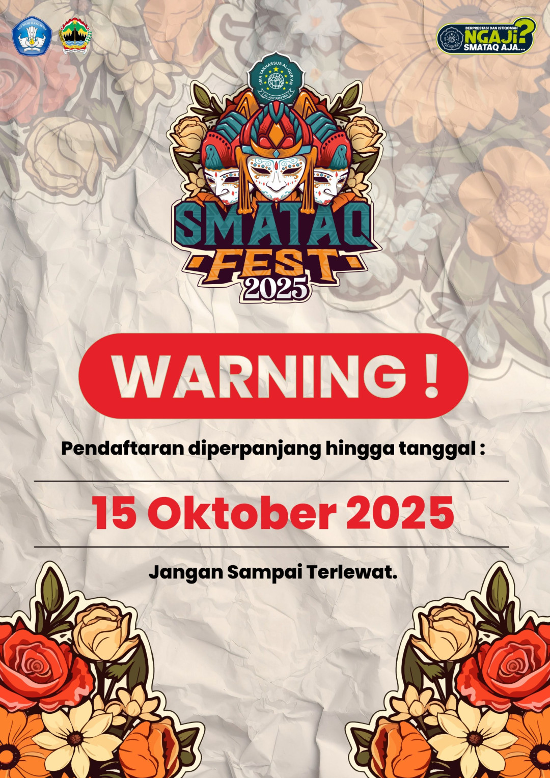 Pendaftaran SMATAQ FEST 2025 resmi diperpanjang sampai tanggal 15 Oktober 2025!