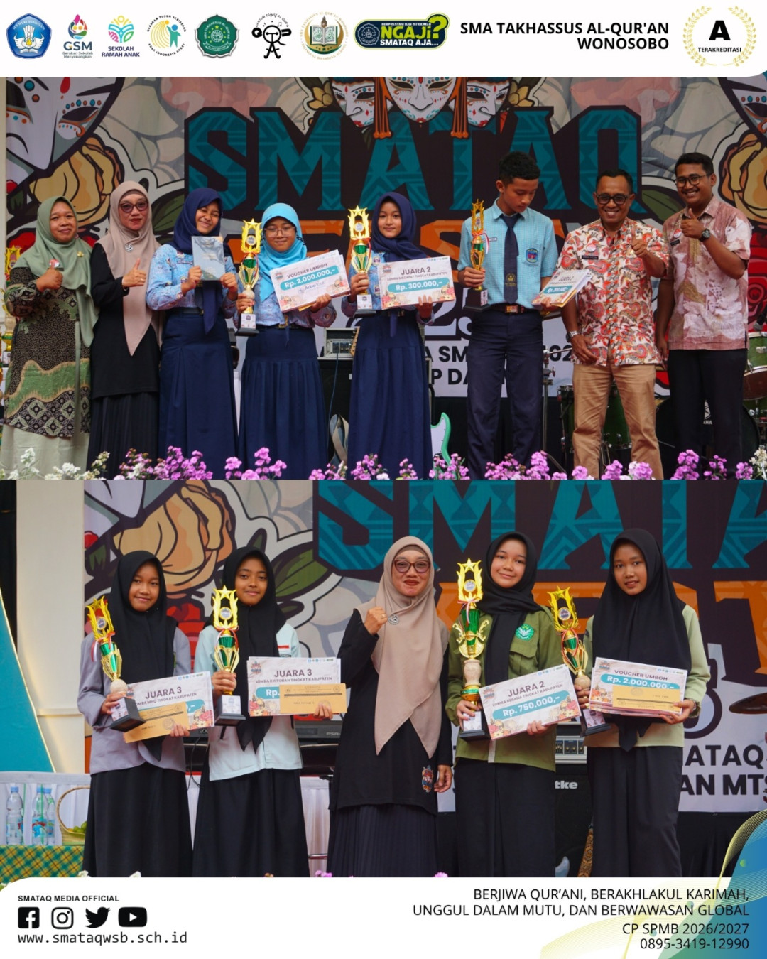 “SMATAQ Fest bukan sekadar ajang lomba, tetapi juga ruang belajar, berkarya, dan berbahasa yang bermartabat. Harapannya, kegiatan ini mampu menumbuhkan semangat Qur’ani dan kreativitas di kalangan generasi muda,” ungkapnya.