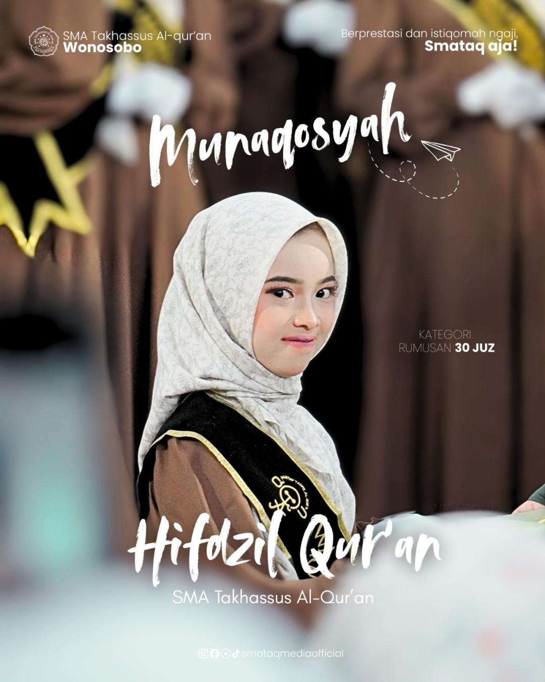 Munaqosyah tahun ini diikuti oleh 60 peserta, yang terdiri dari 12 siswa putra dan 48 siswa putri. Para peserta mengikuti rangkaian ujian hafalan Al-Qur’an dengan penuh keseriusan, ketenangan, dan sikap percaya diri. Sejak pagi hari, suasana GOR SMATAQ tampak ramai oleh kehadiran peserta, panitia, guru, serta tamu undangan yang turut menyaksikan jalannya kegiatan.