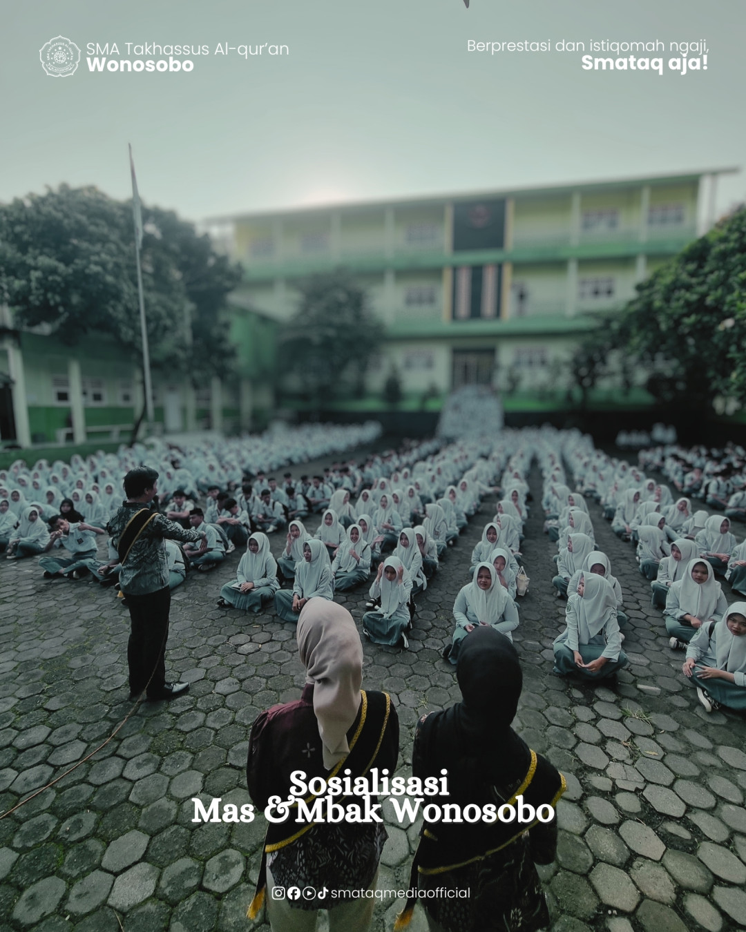 Wonosobo — SMA Takhassus Al-Qur’an Wonosobo menggelar kegiatan sosialisasi Mas & Mbak Wonosobo yang diikuti oleh seluruh siswa dan guru. Kegiatan ini dilaksanakan pada saat apel pagi di halaman sekolah dengan suasana yang tertib dan penuh antusias.
